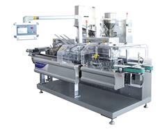 DDU-190型奶粉裝盒機適合900克500克袋裝奶粉自動裝盒,配諾信膠機自動封盒。